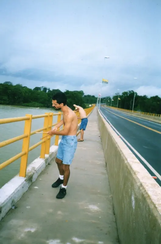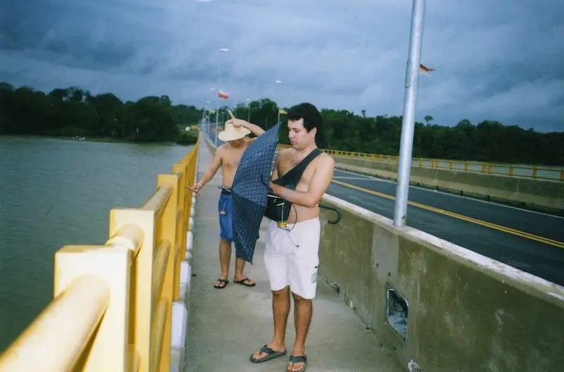 Essas fotos são da mesma tarde, na ponte. Como chovia, eu estava com um guarda-chuva pra proteger o gravador.